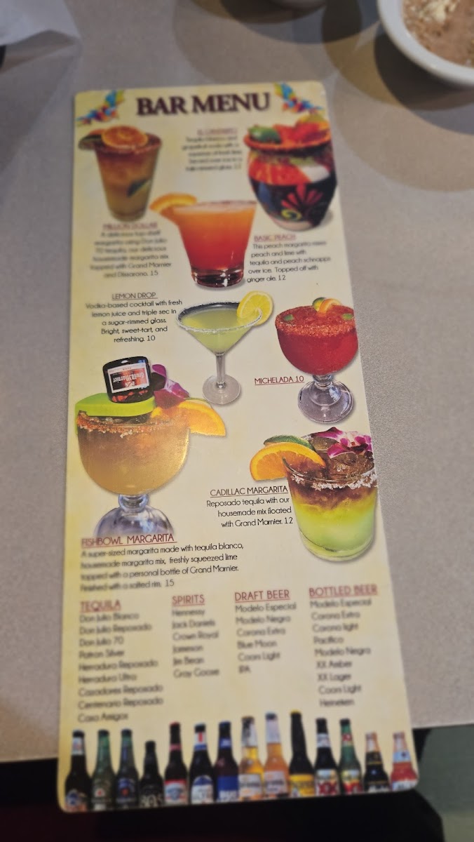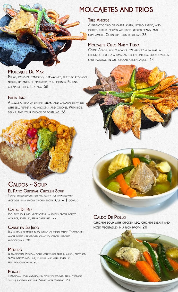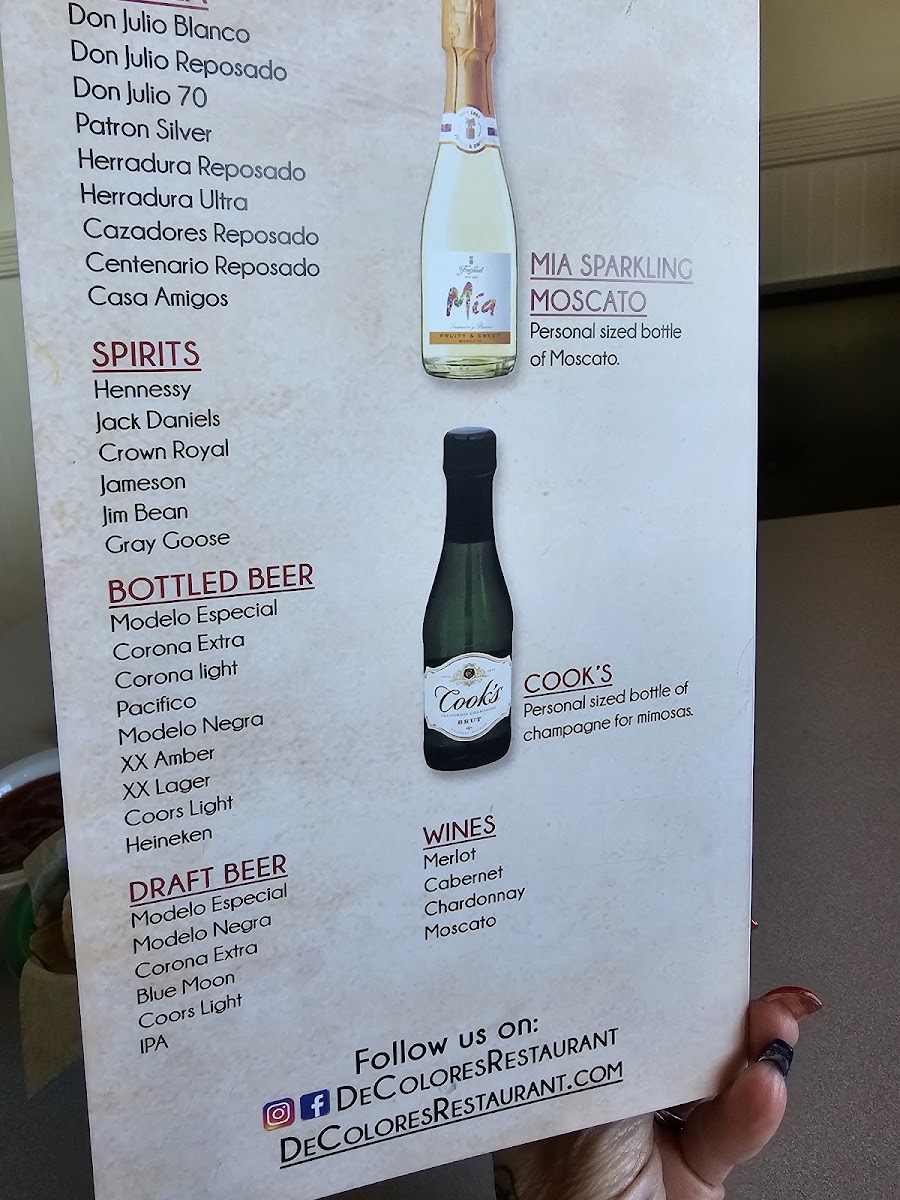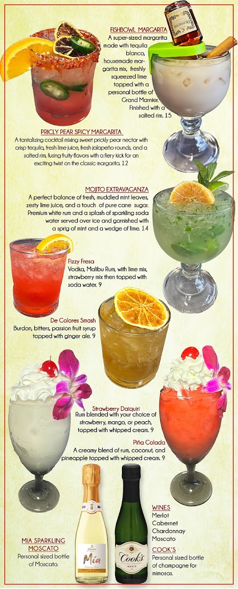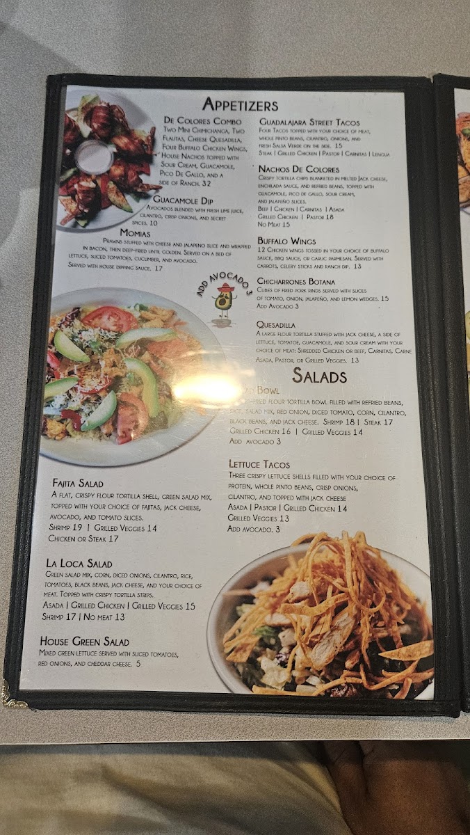 De Colores Mexican Restaurant & Bar offers an extensive and vibrant menu that caters to a variety of tastes. For those craving pork, the Carnitas Tacos Platter and Chuletas Ahumadas stand out, while the Chicharrones En Salsa and Chile Verde provide a savory twist. Seafood lovers can indulge in the Camarones A La Parrila or Ceviche Shrimp, and those seeking more heat can try the Camarones A La Diabla or Shrimp Fajitas. For a filling meal, the burritos like the Shredded Chicken Super Burrito and Lengua Super Burrito are packed with flavor. Tortas and burgers include the bold La Diabla Burger and the juicy Carnitas Torta. If you're in the mood for something lighter, the Botana Marisquera and Aguachile "Don Gil" offer refreshing seafood options. Beef platters such as the Carne Asada and Steak Fajitas highlight rich, grilled meats, while the De Colores House Special brings unique flavors to the table. For a comforting start, try the Nachos De Colores or Guacamole Dip as appetizers. The Mexican-style breakfast selections like Machaca Con Huevos and Huevos Con Chorizo are perfect for early risers, and the desserts like Arlene's Homemade Tres Leches Cake and Churros offer a sweet end to your meal. With refreshing drinks like Mandarin Jarritos and Mexican Coke, alongside hearty caldos such as Menudo and Caldo De Pollo, De Colores caters to every craving, making it a must-visit spot for authentic Mexican cuisine.